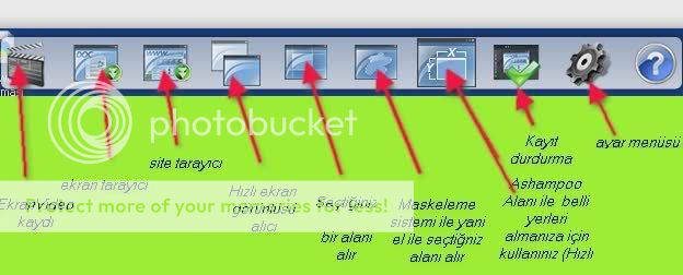 8) Mousemuzu (faremizi) çalışma ekranının en üstüne götürünce bize yapmak istediğimiz bir menü çıkıyor. Açılır kapanır bu pencere ile baya bir kolaylık sunmuşlar. Aynı zamanda sağ alt köşedeki Ashampoo Snap 3 simgesini de sağ tıklayarak bu menüyü açabiliriz.